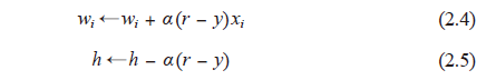 • 实际输出 y 与期望输出 r 相等时,wi 和 h 不变
