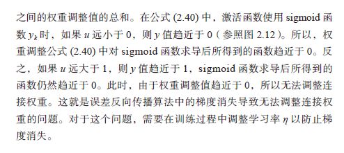 通过误差反向传播算法调整多层感知器的连接权重时,一个瓶颈问题就是激活函数。M-P 模型中使用 step 函数作为激活函数,只能输出 0或 1,不连续所以不可导。为了使误差能够传播,鲁梅尔哈特等人提出使用可导函数 sigmoid 作为激活函数 f(u) [58]。