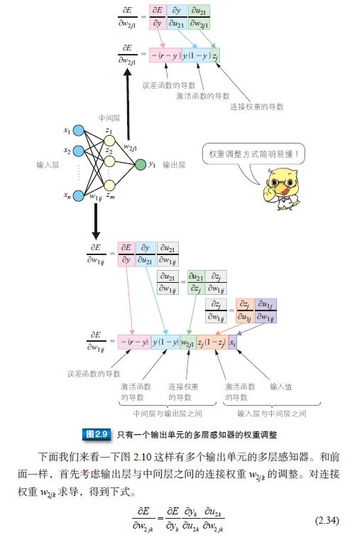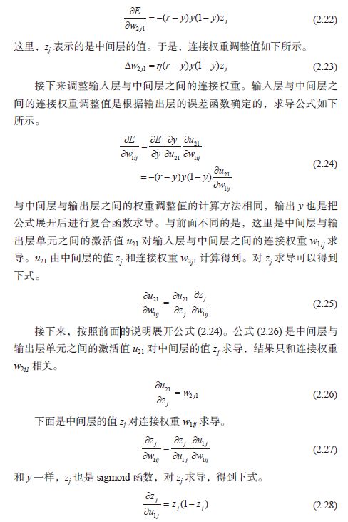 ① 公式(2.15) 中添加1/2,是为了对E 的(rj - yj)2 求导时不产生多余的系数。