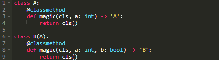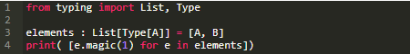 这是因为B是A的子类。进而B可以被装入一个A类的容器中(又因为B扩展了A,所以B能做的比A更多)。然而B的类方法不能被装入A类的容器,因为它不能近用一个参数来调用magic方法。此外,类型linter工具也不能指出这一点:
