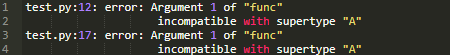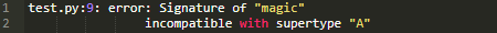 那么你觉得mypy会说什么?如果去运行你会发现mypy选择保持沉默。没错,它会将这些标记为正确的,尽管在运行时失败了。mypy的创作者说这是因为类型失配太普遍了,以致于不能禁止__init__和__new__的不匹配问题。