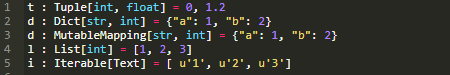 · 文档字符串和添加有类型提示的代码的兼容性不好。试想当类型标注和文档字符串同时生效时,哪个优先呢?