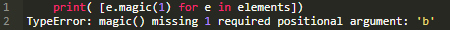 一个快速而简单的解决方法是通过一些手段确保B.magic方法可以在只有一个参数的情况下工作,比如将第二个参数设置为可选项。现在用我们所学到的来看下面的代码: