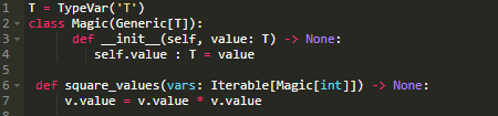 我们还可以用TypeVar函数来定义自己的一般变量: