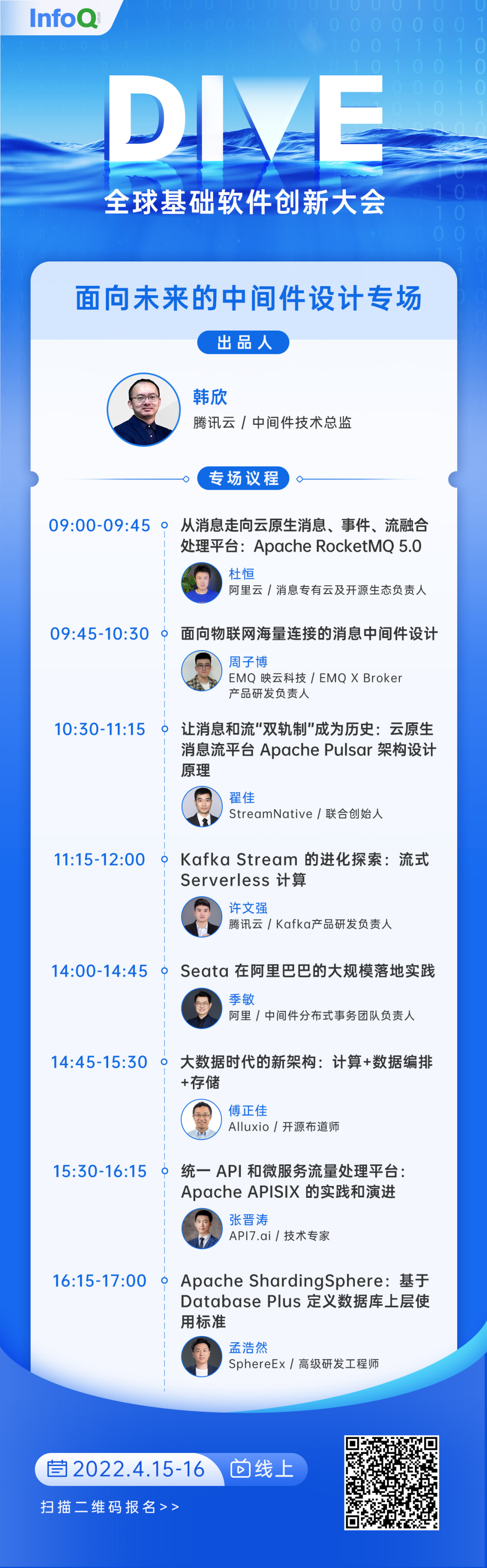 有个老话说:计算机领域的任何问题都可以通过一个中间层来解决。我们非常期待在 DIVE 大会上,和大家一起探讨中间件的未来发展!