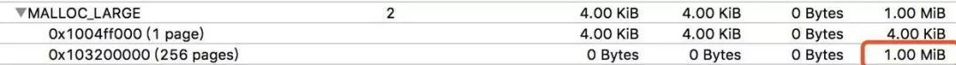 现在Resident Size,Dirty Size也是1M了,说明这块内存已经被映射到物理内存中去了。为了解决这个问题,苹果官方推荐使用calloc代替malloc,calloc返回的内存区域会自动清零,而且只有使用时才会关联到物理内存并清零。