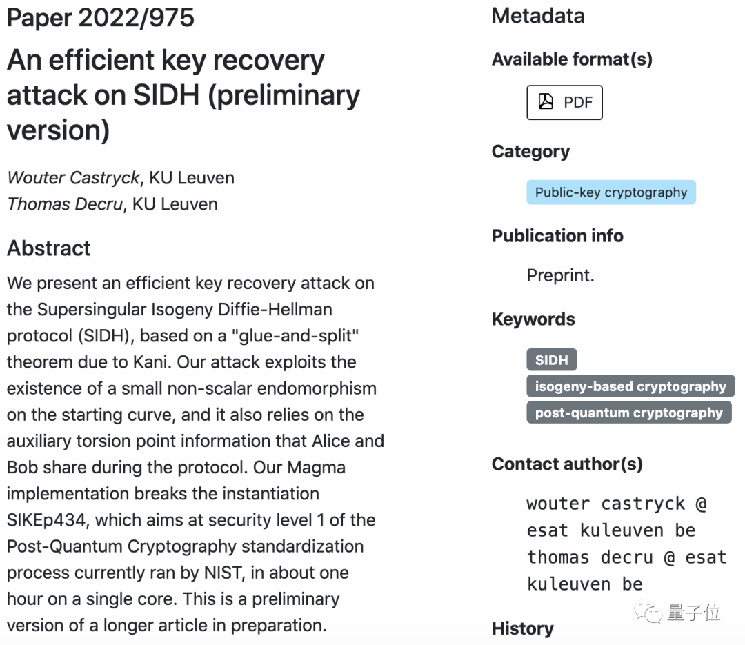 两位鲁汶大学学者基于数学理论破解量子加密算法的消息,最近轰动了密码学界。