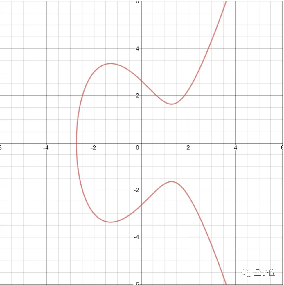 这是一种利用椭圆曲线作为定理的加密算法,看上去可以由一个y²=x³+Ax+B来表述,其中A和B是数字。