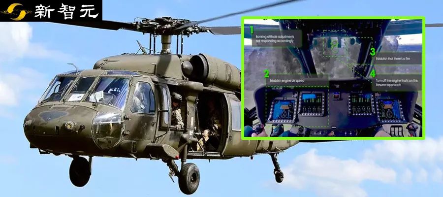 诺格公司的OCARINA概念图:在从直升机姿态无法矫正、到确认引擎起火的全过程中,AI担负了大部分判断,仅提示飞行员做出一次动作