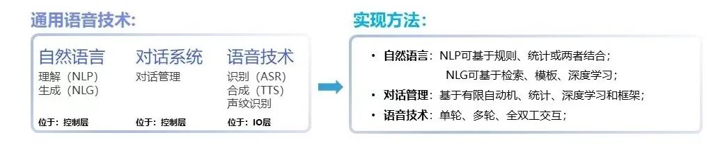 先通过语音识别模块将自然语言转换成文字,随后将文字处理成词或句子向量,进入对话管理系统后,进行模型匹配和生成,把问句生成答句,再通过语音合成把文字转换输出给用户。