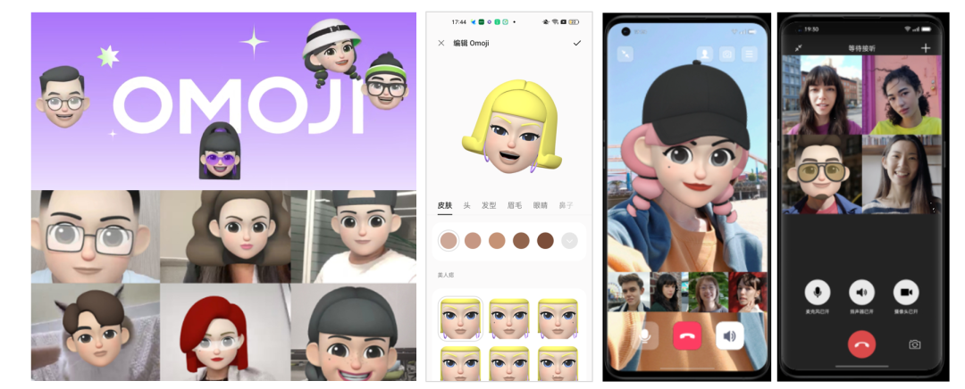 用户可以根据自己的形象以及喜好捏出自己风味的 Omoji虚拟形象,其中肤色、发型、帽子、眼镜等包括五官都可以自己定义。