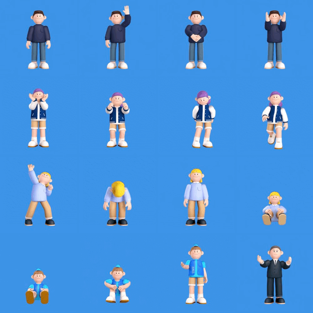 千人千面通常为用户在数字世界的替身,用户可以根据自己喜好自定义虚拟人的外形,进行捏脸和服装匹配等。千人千面通常需要伴随虚拟人动作库的录制以及相应数字资产的设计。