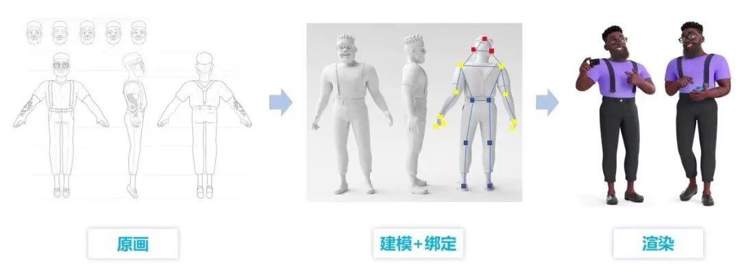 形象生成的过程即为建立数字资产的过程,通常由原画师负责虚拟人的外观设计,绘制出平面形象,再由3D建模师将原画转换为立体的模型;在建模的过程中,建模设计师的经验显得尤为重要,通过合理的叠加贴图方式和精度取舍,可以让虚拟人达到系统可以承载范围内的最佳效果。
