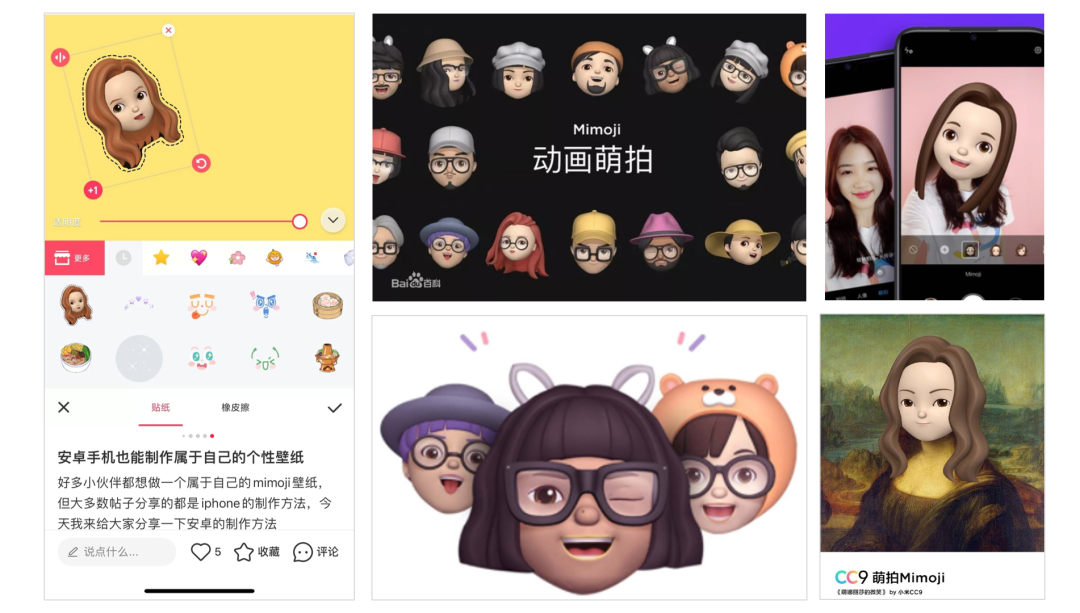 在相册模块加入Mimoji以后,拍照录像有了更多新玩法,用户可以用虚拟的人物头像录制短视频,做成表情包分享到社交平台或者发到微信朋友圈等。