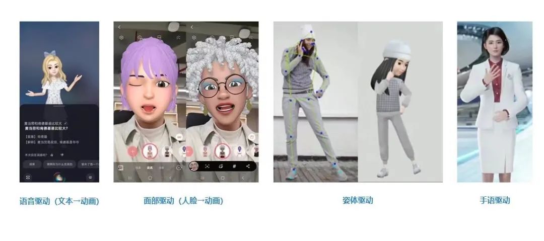 形象驱动的种类较多,主要是为了让虚拟人可以根据人的指令进行不同的动作和反应,完成与用户之间的交互过程。