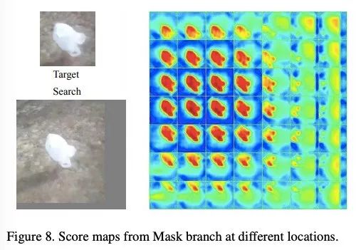下图展示了使用SiamMask算法计算得到的图像中不同位置的score值。