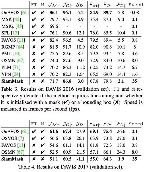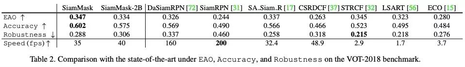 SiamMask 相比之前的跟踪算法的 state-of-the-art 精度又改进不少。