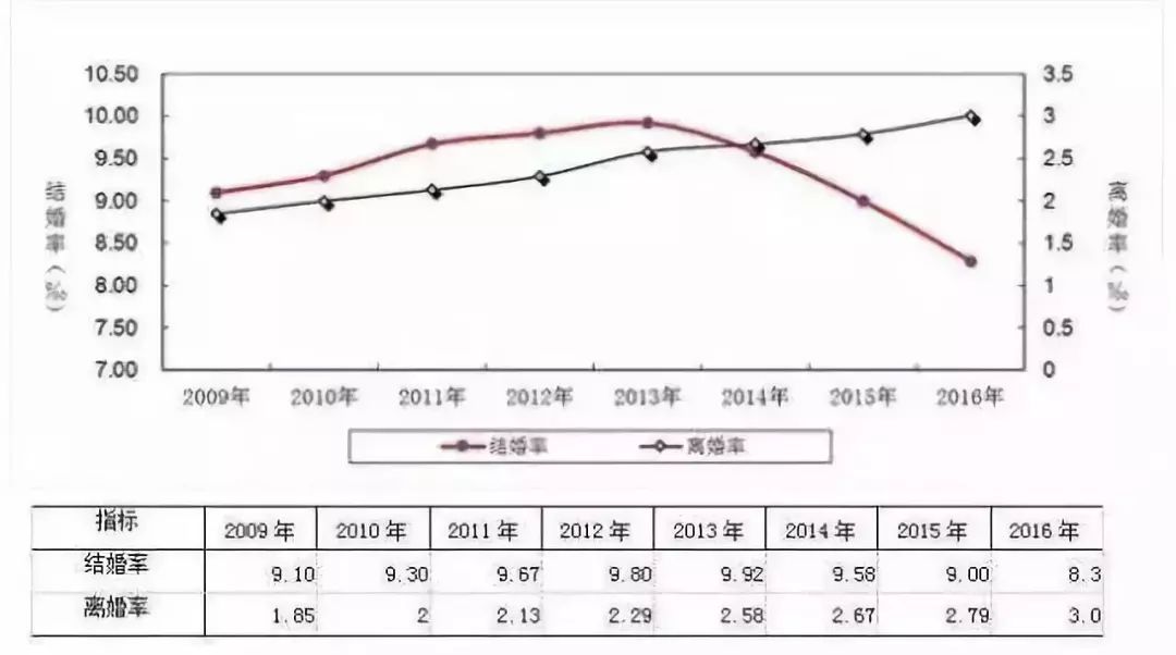 图中红色曲线为结婚率,黑色为离婚率