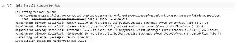 我们从安装tensorflow-hub开始,它使我们能够轻松地使用这些句子编码器。