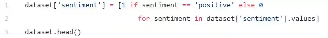 我们将情感表示的列编码为1和0。