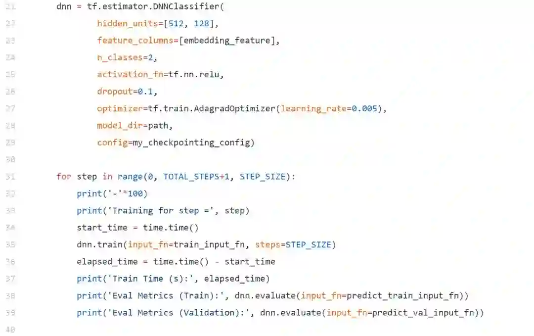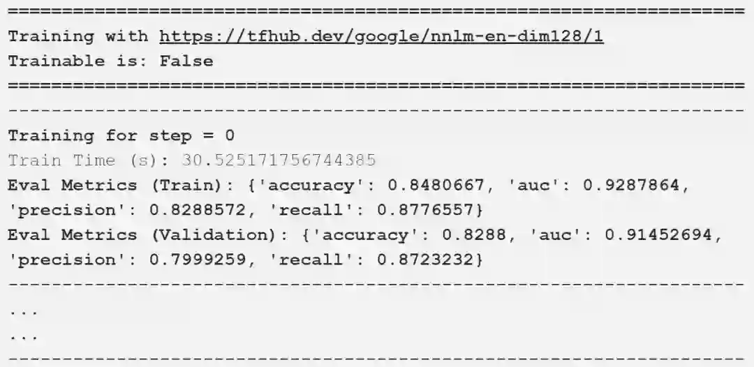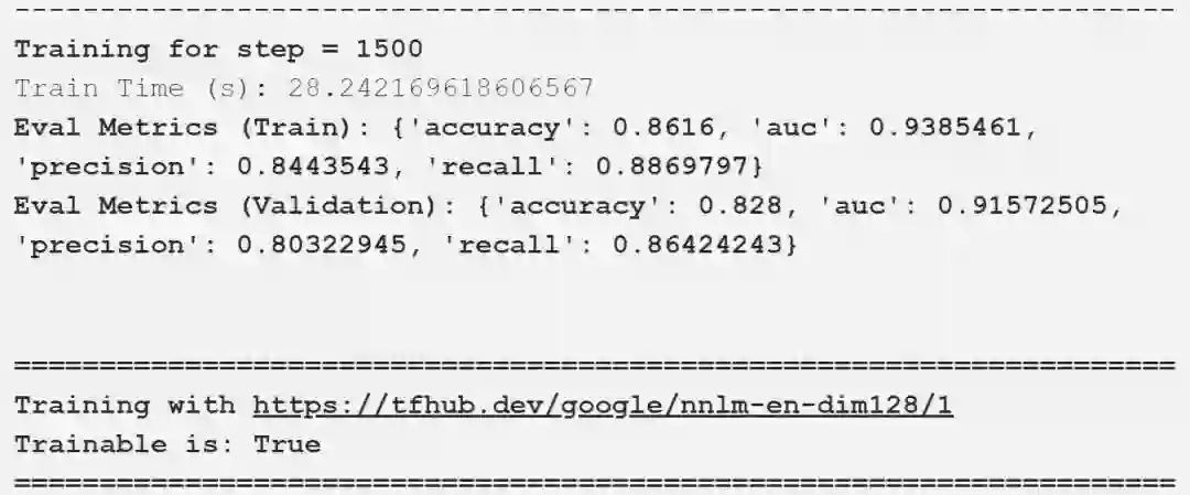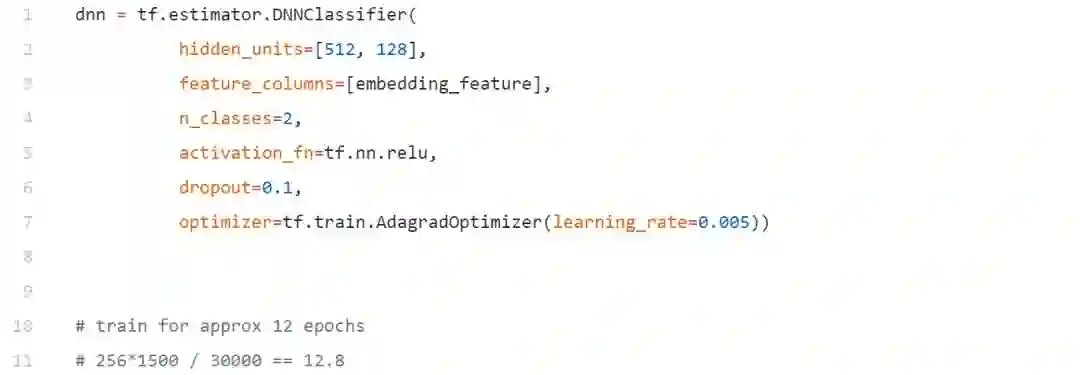 我们将建立一个简单只有两个隐层的前馈DNN,现在只是一个标准的模型,没有太复杂,因为我们想看看这些嵌入在一个简单的模型上执行得有多好。在这里,我们正在利用预训练嵌入形式的迁移学习方法。