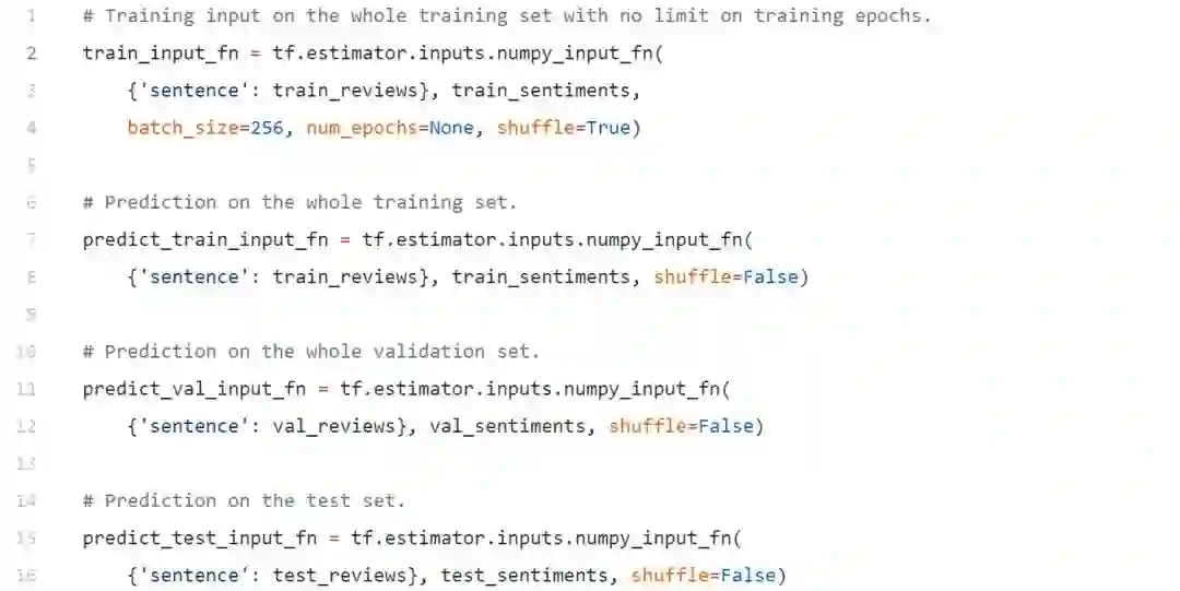 由于我们将使用tf.estimator API在TensorFlow中实现我们的模型,因此我们需要定义一些函数来构建数据和特性工程pipline,以便在训练期间将数据输入到我们的模型中。我们利用numpy_put_fn(),这有助于将大量的numpy数组输入到模型中。