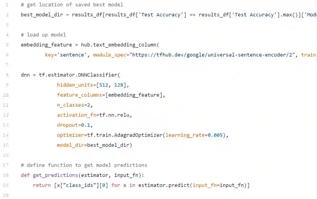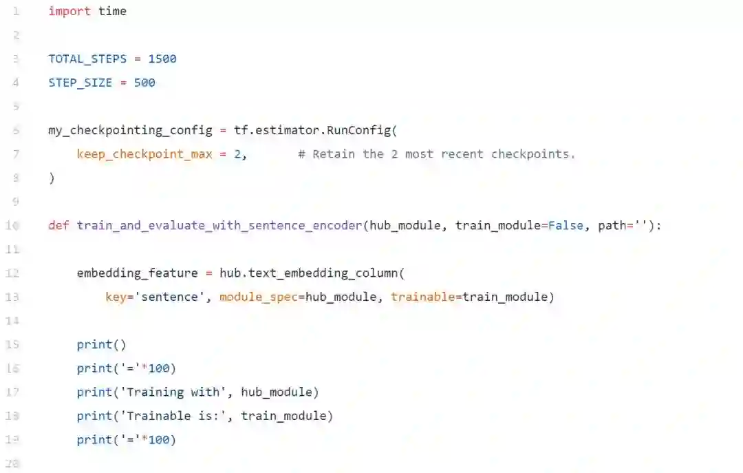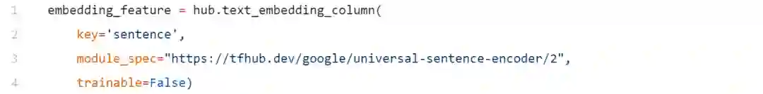 在建立模型之前,首先要定义利用通用句子编码器的语句嵌入特征。我们可以使用下面的代码来实现这一点。
