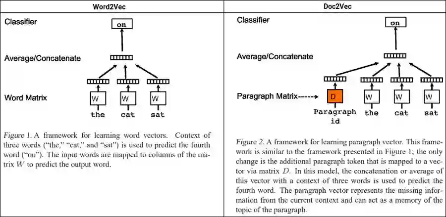 Word2Vec vs. Doc2Vec (Source: https://arxiv.org/abs/1405.4053)