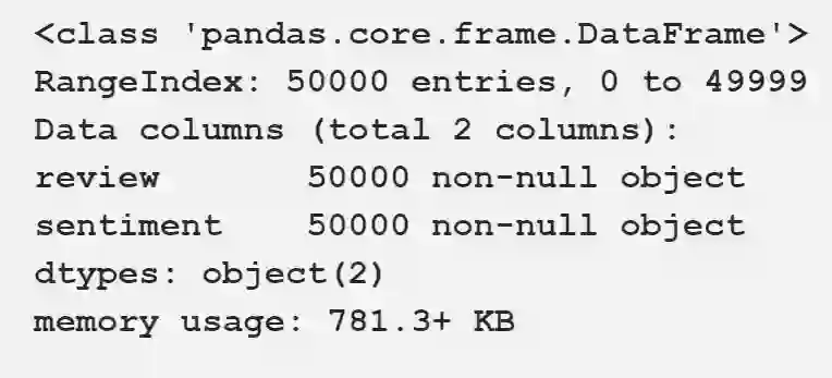 这个数据集共有50000部电影评论,其中25k有正面情绪,25k有负面情绪。我们将在总共30000次评论上训练我们的模型,在5000个评论上进行交叉验证,并使用15000次评论作为我们的测试数据集。主要目的是正确预测每一次评价的积极或消极情绪。