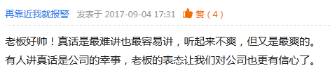 该邮件言简意赅,159个字中讲明了公司鼓励员工以及个干部讲真话,改风气。并且以“连升两级”的实际奖励,并且报送了董事会、监事会成员的行为来表示公司对鼓励讲真话的态度十分重视。