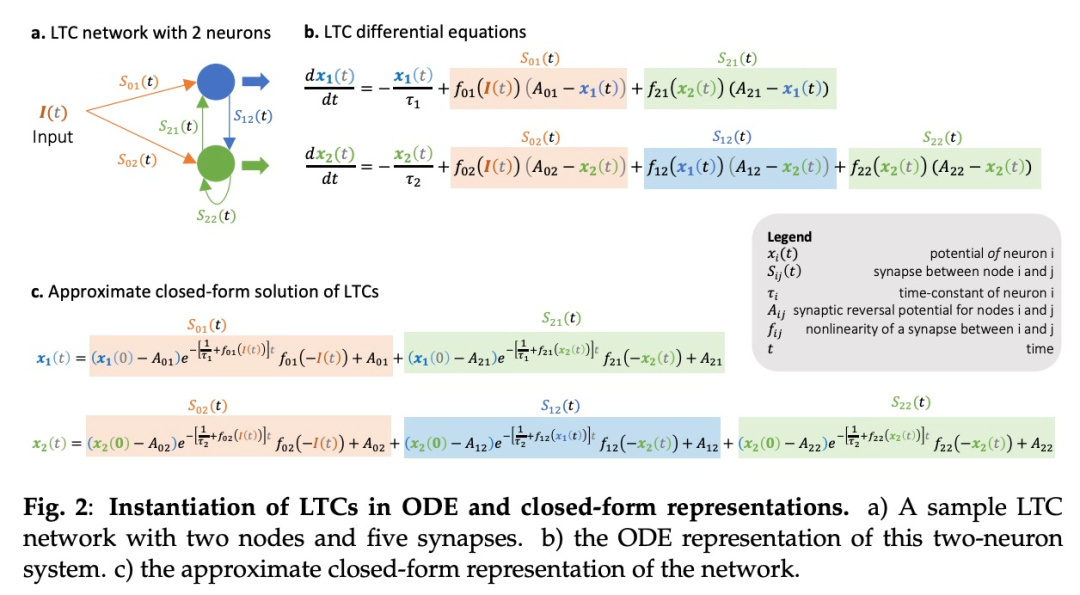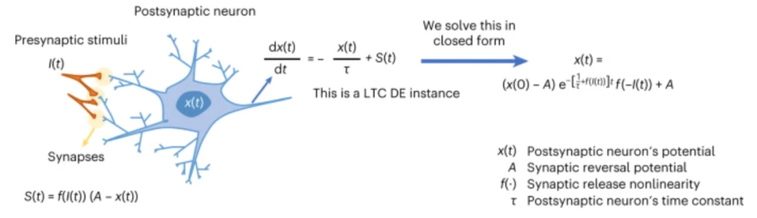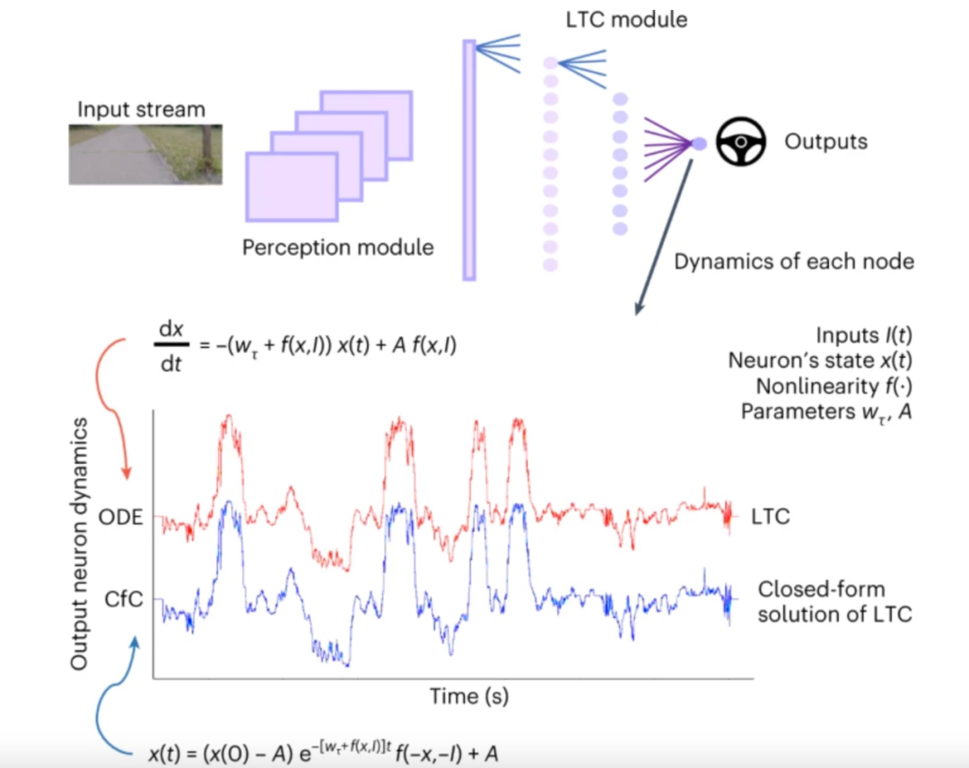 微分方程使我们能够计算事件在演化过程中的状态,使用 CfC 神经网络,人们可以在任意时间计算这个方程。由于不需要一步步求解微分方程,因此计算速度也快得多。