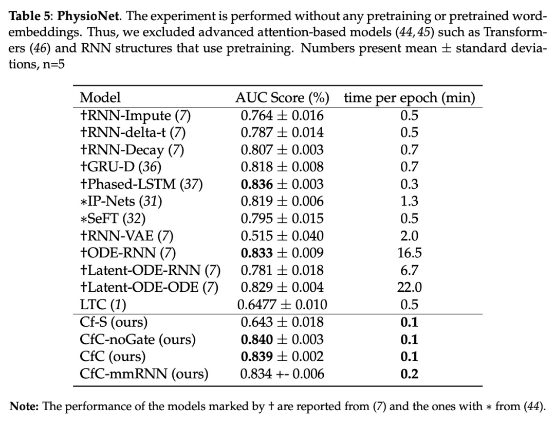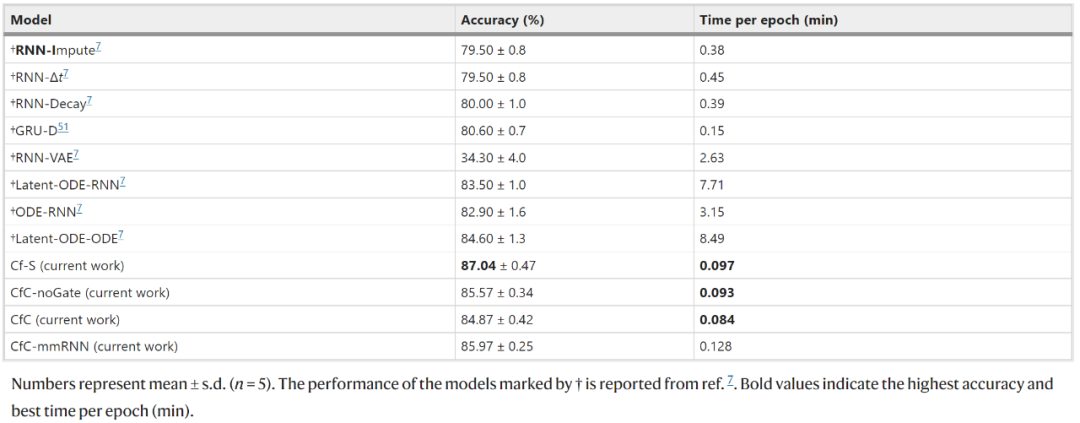 与基于微分方程的对应模型相比,CfC 在训练和推理方面速度要快 1 到 5 个数量级。更重要的是,与基于普通微分方程的连续网络相比,CfC 可以很好地进行扩展。最后,由于 CfC 模型源自 liquid 网络,与先进的循环神经网络模型相比,CfC 在时间序列建模方面表现出良好的性能。