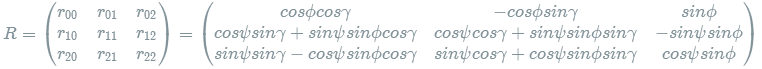 旋转矩阵:物体相对于相机的空间姿态关系矩阵,用R表示。