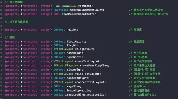 上图是项目中某个cellLayout的部分代码,可以看到里面存的就是所有控件的frame和文本的排版结果而已,里面没有任何的黑科技,只是将本来在滚动中才做的事情提前了而已。