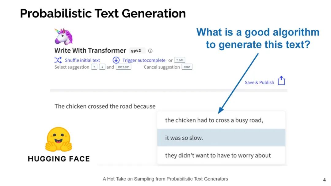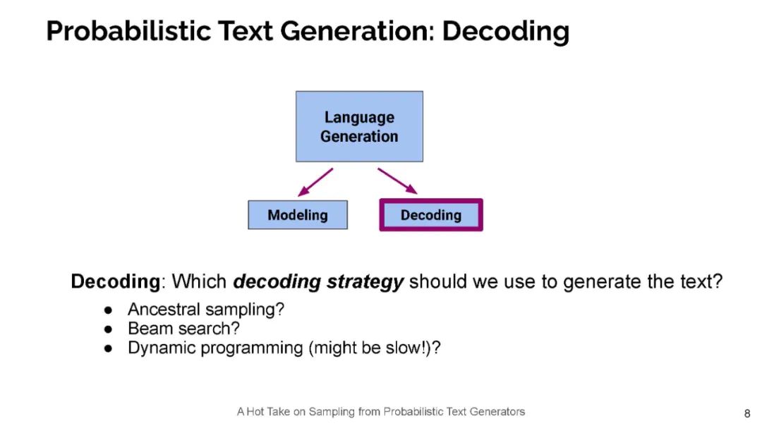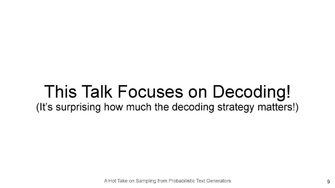 今天的神经语言模型似乎很好地模拟了句子的分布情况,也就是说,它们能够给递出的文本分配高概率。然而,在用于生成文本时,这些相同的模型经常表现不佳——实际上,文本神经语言模型放置的高概率通常是枯燥和重复的。所以,一个好奇的人可能会问:这是怎么回事?在这次演讲中,我将通过信息理论的视角来探讨这一明显的矛盾。具体来说,我认为人类使用语言作为一种沟通渠道。在这种情况下,人们往往会说出既简洁高效,又容易理解的句子。因此,我断言,当我们使用语言模型来生成文本时,我们应该采用类似的原则。这一原则导致了一个简单的抽样策略,我称之为典型抽样。典型的抽样不是每次迭代都从分布的高概率区域中选择单词,而是选择信息量(负对数概率)接近条件分布p(y | y1,…,yk)熵的单词,即分布的平均信息量。我们发现,典型抽样在质量方面优于最近提出的几种抽样算法,同时持续减少退化重复的数量。