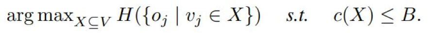 因此,这个任务的目标是选择一个位置子集 X,使得 {o_j | v_j ∈ X} 的熵最大。