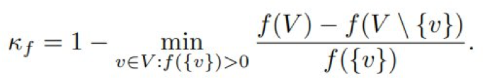 定义 2 所代表的总曲率描述了单调子模函数 f 与模块度(modularity)的相近程度。