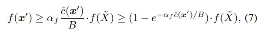 由于问题式 (3) 需要在满足预算限制的同时实现 f 的最大化,所以 EAMC 只会考虑满足 cˆ(x')≤B 的 x';