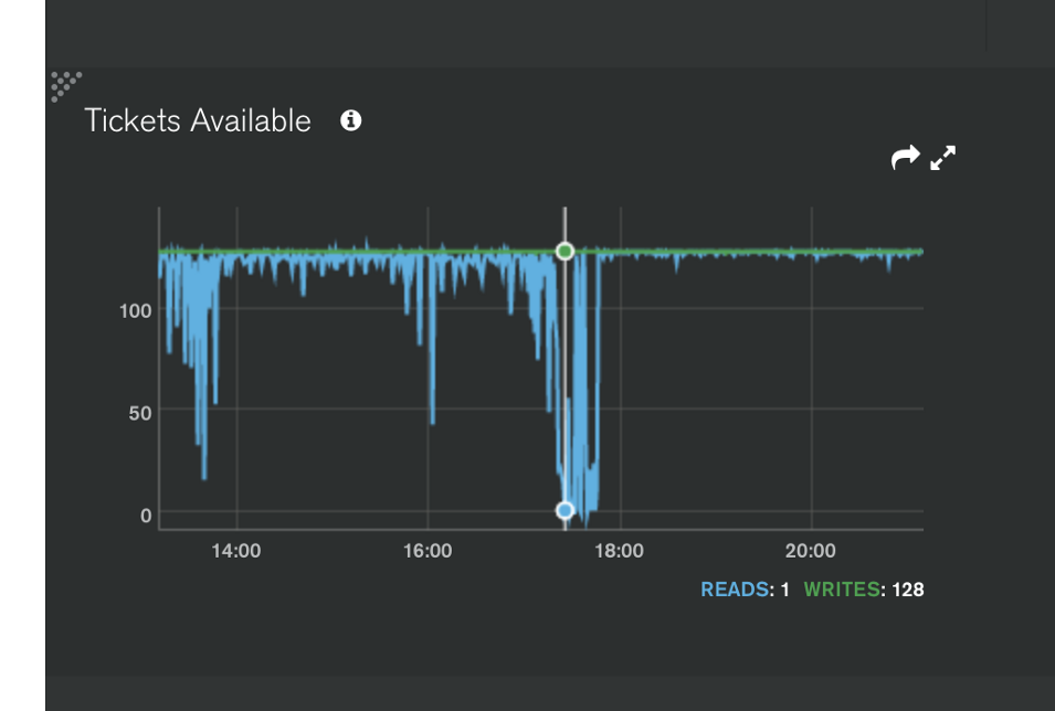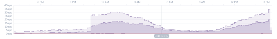 再次是系统资源使用是恒定的,偶尔会有峰值。在“捐赠日”的特定时段,比如一天的开始和社交媒体协调推送期间,我们可以看到活动大幅增加。对于一个活动,在不到一秒的时间内,每秒请求数就可以从 0 增加 150。这种没有预热的激增有时与 DDOS 难以区分。