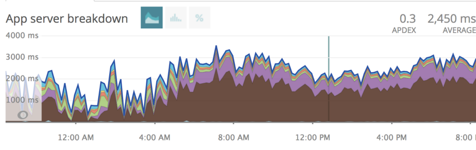 这个指标低就意味着我们做得很好,高则意味着我们做得不好。像 DataDog 或 NewRelic 这样的 APM 工具可以为我们提供层级响应时间,我们可以用它们来找出瓶颈。