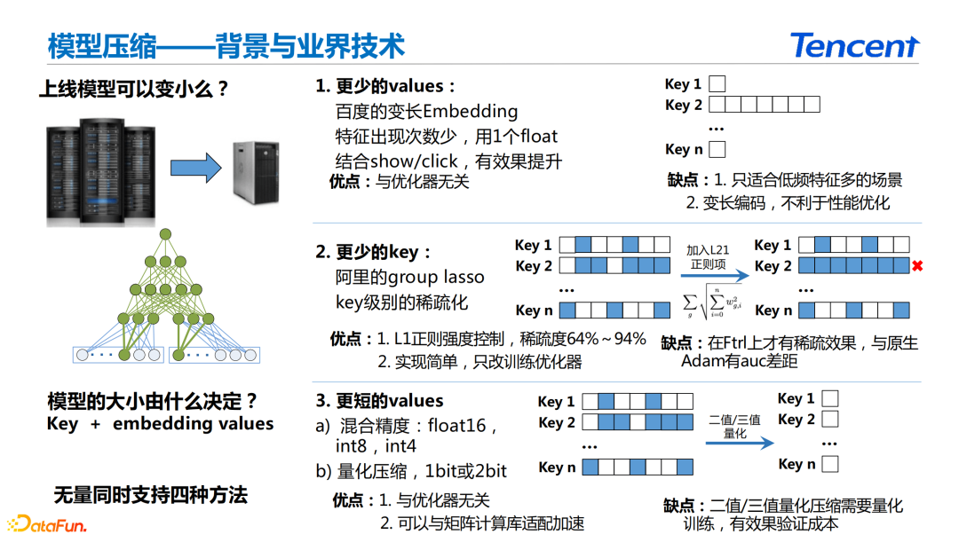 在推荐业务中模型的大小主要取决于稀疏层key-value的大小。在推荐系统的深度学习框架中主要采用的优化方式有两种: