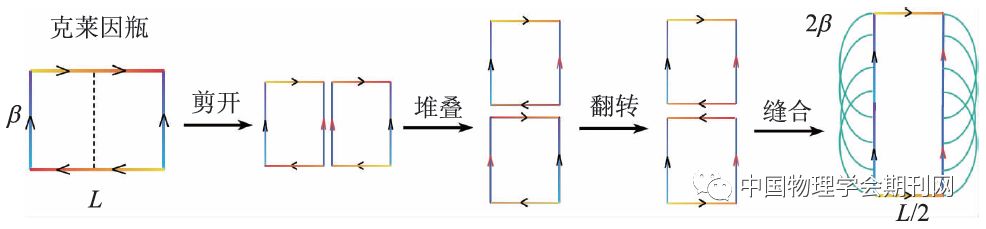 图4 剪开—堆叠—翻转—缝合操作,提供计算和理解克莱因瓶上共形场论普适热数据的简洁有效方式