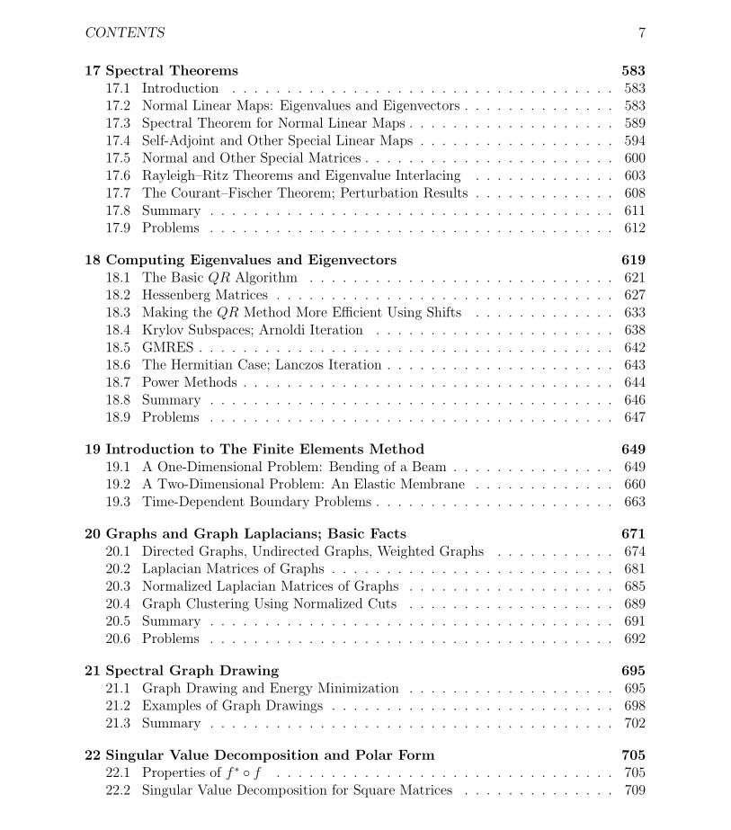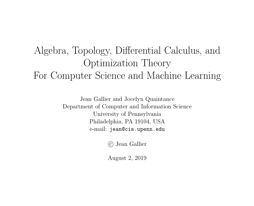 相信许多做机器学习研究的小伙伴都有着或多或少的数学知识方面的困扰,下面这本书是宾夕法尼亚大学计算机和信息科学系教授Jean Gallier的开源书籍,不但涵盖了与机器学习相关数学知识的,而且对于其应用方面也做了相关介绍。