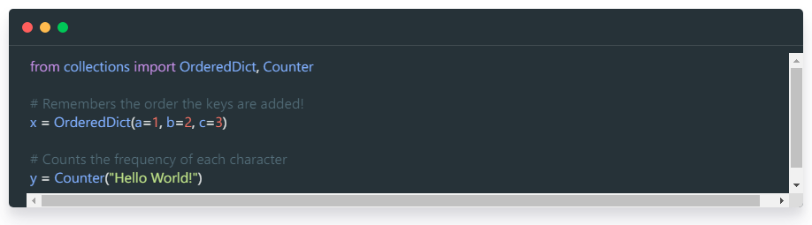 幸运的是,Python 标准库提供了 collections 模块,这个方便的附加组件提供了更多的数据类型。参阅: