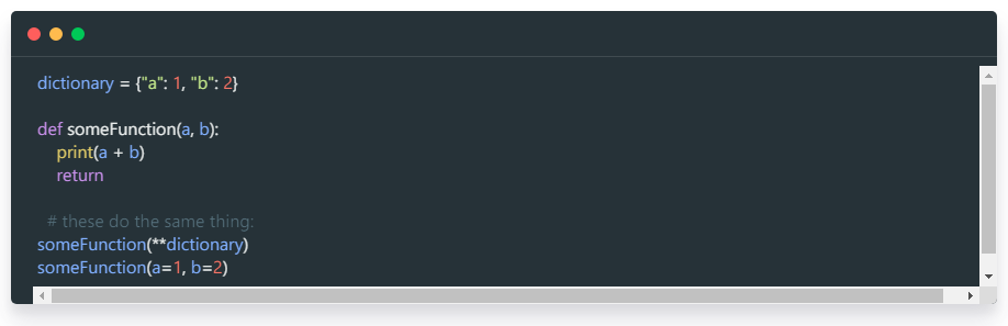 dictionary 对象前面的双星号允许您将该 dictionary 的内容作为命名参数传递给函数。详见: