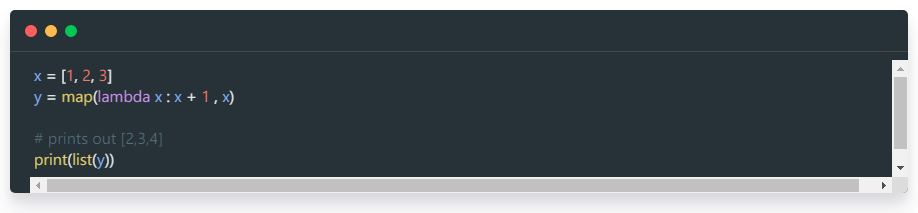 Python 是通过许多内置功能支持函数式变成。其中最有用的函数之一是 map() 函数,特别是这个函数与 lambda 函数结合使用时。参阅: