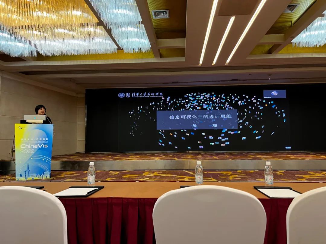 可视化教育专题由来自中国海洋大学的解翠讲师主持,邀请了美国雪城大学徐瑞鸽教授、北京大学袁晓如研究员、清华大学吴琼教授、华东师范大学王长波教授进行专题研讨。徐瑞鸽教授认为在可视化教育的过程中应使数据的视觉表示具有美学上的强大功能,同时具备交流必要的信息,探讨了怎样从艺术家和设计师两个领域获得彼此的基本理解和词汇,有效合作创建多样化和引人注目的数据可视化等方面的研究。袁晓如研究员介绍了推广可视化通识课程建设的重要性,认为可视化作为沟通和表达的桥梁,能够为不同学科背景的学生带来启发;并进一步探讨了如何把可视化从面向计算机专业学生的可视化工具、算法核心等课程内容,演变为面向不同学科背景的数据可视化课程。吴琼教授提出信息图形与可视化不仅是信息表征与传达的方法,也提供了一种思考、解读和处理问题的方式;通过探讨设计思维的本质,即面向解决方案和整合性思考模式及方法,进一步提出设计思维对信息可视化的价值。王长波教授以数据之美为主线,深入探讨了数据可视化课程如何实现技术与艺术交叉、如何结合行业应用案例以及如何有效融入课程思政;认为数据可视化通过培养学生的形象思维与技术水平,可有效提升学生的审美能力及实践能力。
