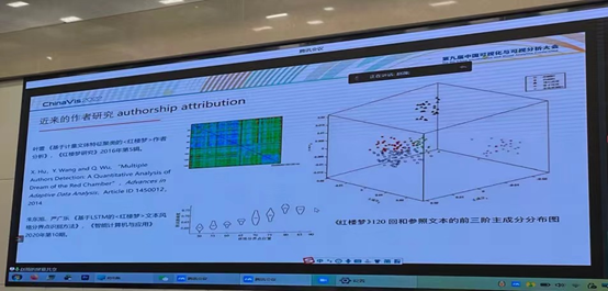 数字人文(艺术/文学)专题由南京大学陈静副教授主持,邀请了上海大学李谦升副教授、浙江大学陈晓皎研究员、中国社会科学研究所赵薇助理研究员以及上海图书馆夏翠娟研究员进行专题研讨。李谦升副教授报告介绍了文化遗产的共性和差异,通过藏轮的例子详细的讲解了如何将壁画艺术从历史、内容、视觉、工艺等方面进行分析、重构、演绎与传播。陈晓皎研究员通过使用复沓字的数据编码,结合古琴、箫和鼓设计了《诗经·古谱》音乐可视化系统,并结合通感可视化让大众更好地理解唯美而古朴的《诗经》韵律。赵薇助理研究员以《红楼梦》为例探讨了文学史研究和计算机批评领域的一些争议的成因和根源,并对相关研究的方法做了讲解和解析。夏翠娟研究员探讨了以“社会记忆”理论为视角、数智技术为研究证据的人文研究,提出数据可视化方法作为一种重要的“数智证据”生成机制,为记忆展演提供了有助于与受众建立情感联结的艺术化表达手法。