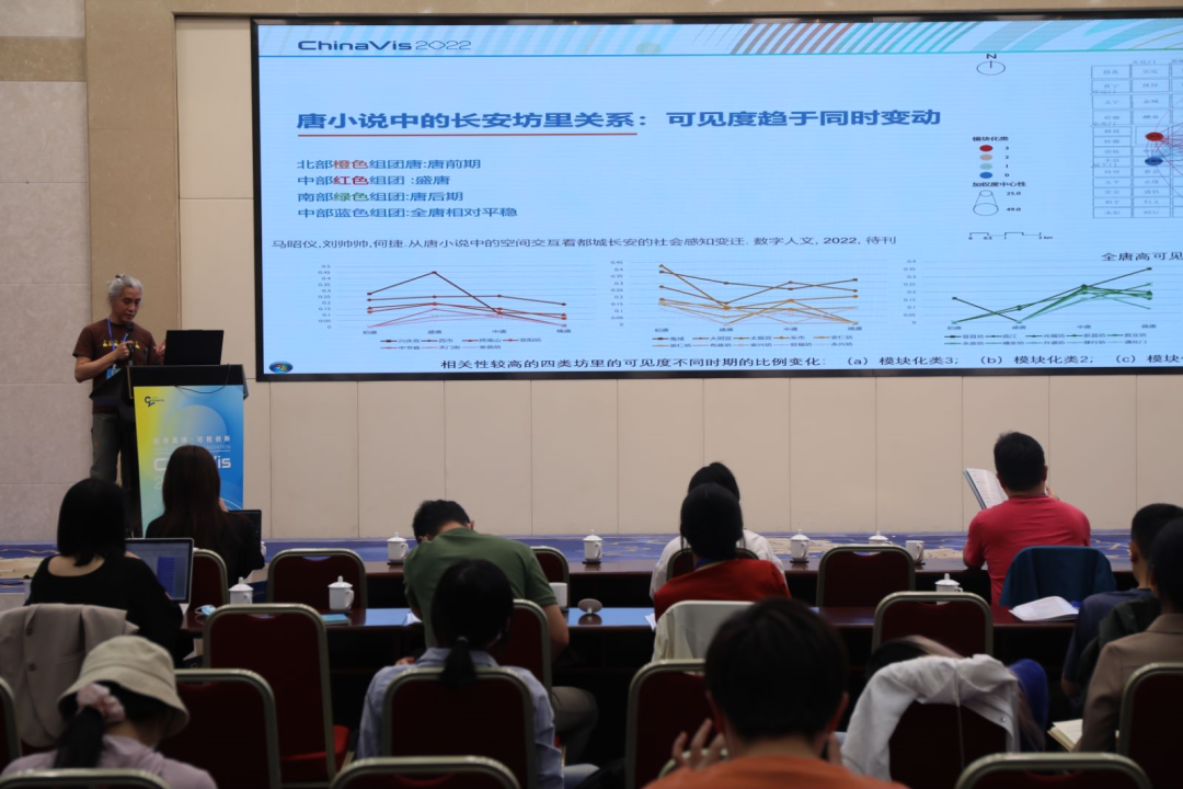 数字人文(时空/地理)专题由西北大学张雨禾副教授主持,邀请了北京大学王长松研究员、复旦大学张晓虹教授、哈尔滨工业大学(深圳)何捷教授以及牛津大学张宇博士研究生进行专题研讨。王长松研究员提出了通过历史地理信息系统(HGIS)与文本分析的方法,提取地方志中“八景”信息,涉及黄河中下游地区478个县级政区和4021个景观,揭示了传统景观的文化意义。张晓虹教授介绍了复旦大学中国历史地理研究所与哈佛大学合作研发的“中国历史地理信息系统”,分享了在该系统的基础上整合不同要素、不同专题的历史地理信息系统构建成中国历史地理信息平台的过程。何捷教授从空间可视化的图像传统与“时间—空间”知识为出发点,强调了“数字人文”问题导向下数据驱动的时空现象可视化对隐含现象挖掘和阐释的支撑。张宇博士研究生介绍了通过交互式机器学习从可视化中进行数据重建,并通过图形化开发工具低代码地开发数据重建流程,以及这些工作对通用数据标注工具的启发。