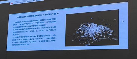 张晓虹教授介绍了团队开发的中国历史地理信息系统,该系统不仅可以直观、生动的呈现中国2000年来的行政区划变迁过程,还可以精细的展现历史上某一时期的气候变化。张教授认为可视化对知识传播有重要意义,可以促进人文学科的知识发展和学科范式,近二十年来可视化在历史地理中的发展已充分验证了可视化的意义。
